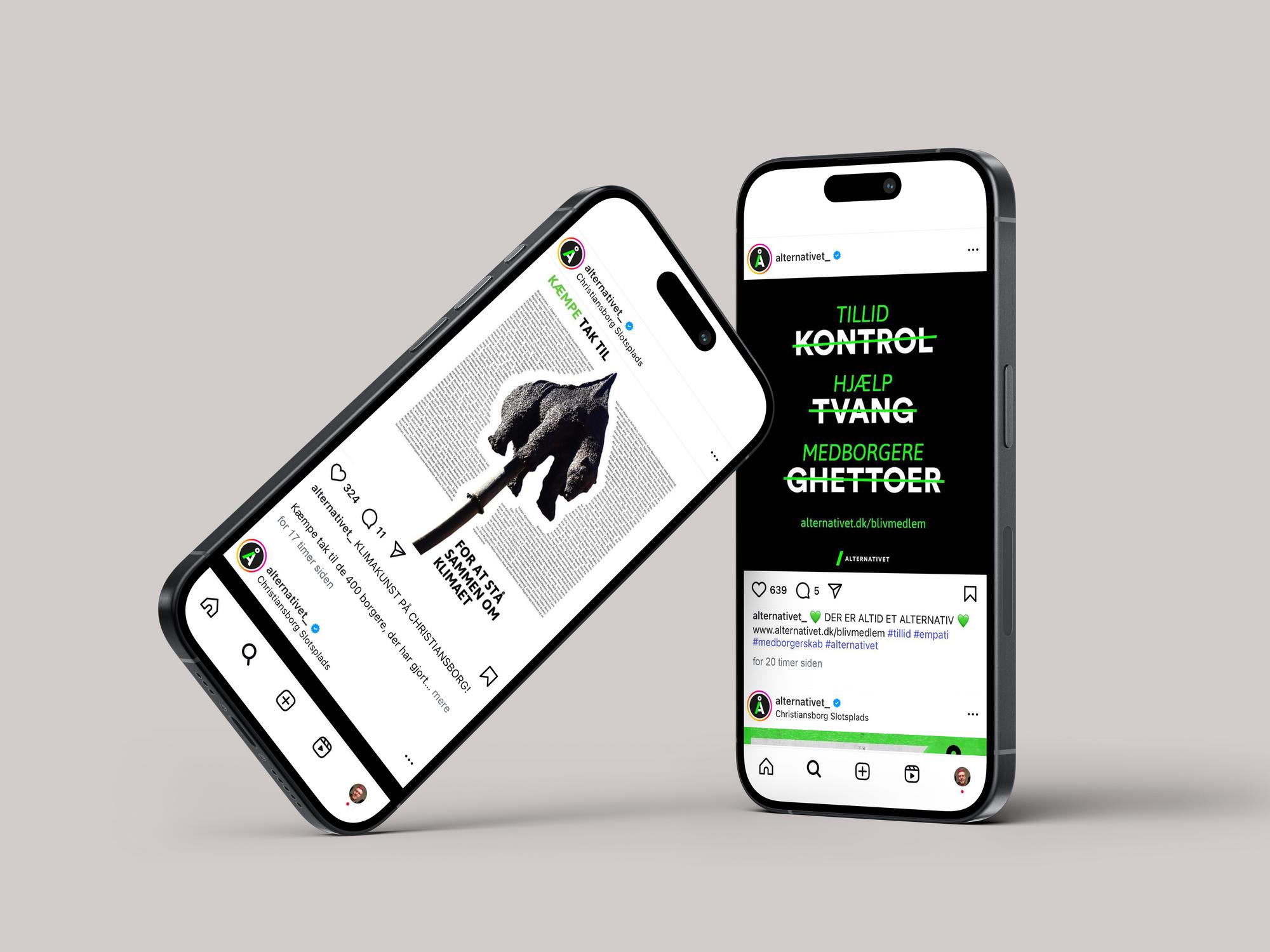 When I worked at the Danish political party 'Alternativet' I was responsible for the overall visual identity, digital design, design for social media, posters, campaigns and other projects.